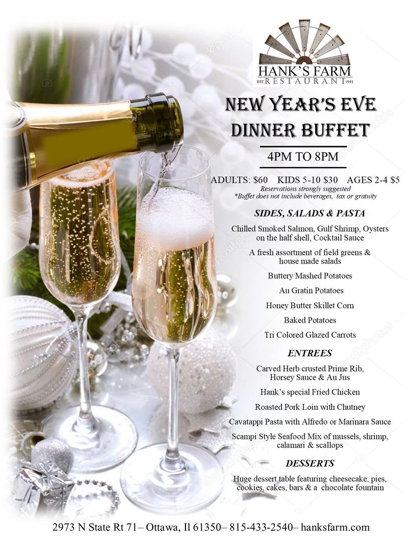 New Years Eve Dinner Buffet with Prime Rib Wed. Dec. 31st 4-8pm